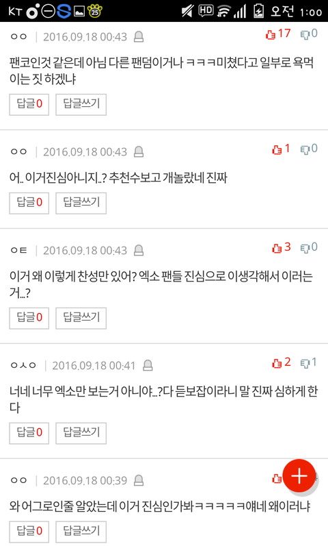 가서 반대 좀 눌러 찬성 왜이렇게 많냐고 진심이냐고 엑소랑 엑셀까고 ㅈㄹ하더라
