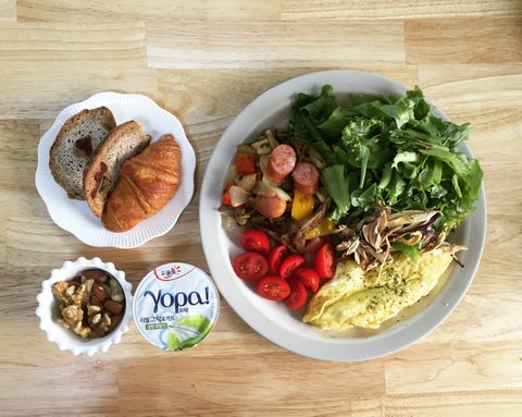 아침에 차려 먹는 브런치 사진만 올려볼께요.