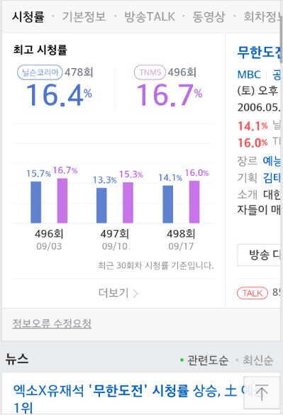 무도 시청률 상승 토요예능 1위