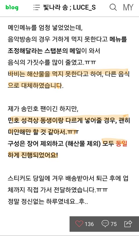 위너팬들은 바비가 해산물못먹는다는 소식듣고 메뉴까지 바꿈ㅋㅋㅋ장어대신에 닭강정으로 바꿔줬고