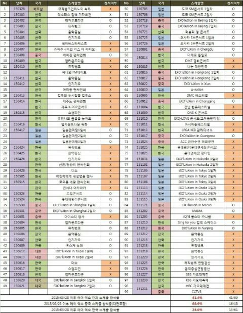 4. 2015년 엑소 스케줄 대부분 불참 (엑솔루션 투어 대부분, 시상식, 연말음악방송, 음악방송 등등)