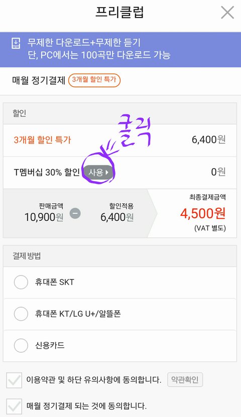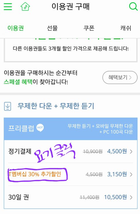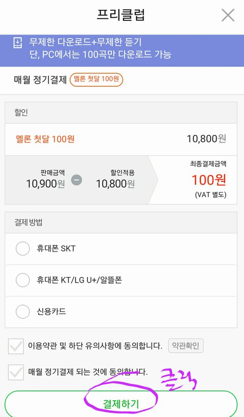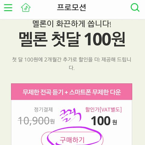 첫달 100원 프로모션 이용하면 돼‥혹시 배너가 안뜬다면 멜로니 완전 껐다가 다시 들가면 배너뜬다. 이건 첫달만 이용하고는 해지는 안돼. 최소 둘째달까지 이용해야 해지되니 3달 스밍하자~