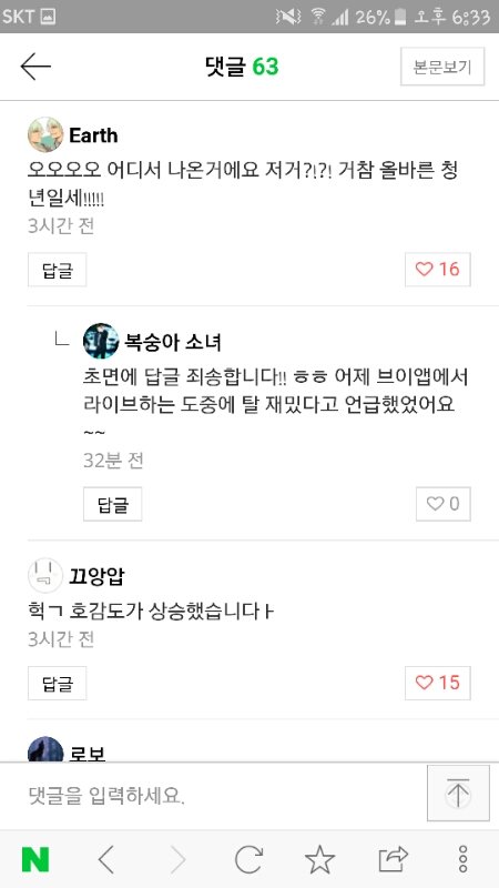 아까 탈작가님이 동우가 언급해주셨다고 블로그에올렸다고해서 가봤더니 댓글반응이ㅋㅋㅋㅋ