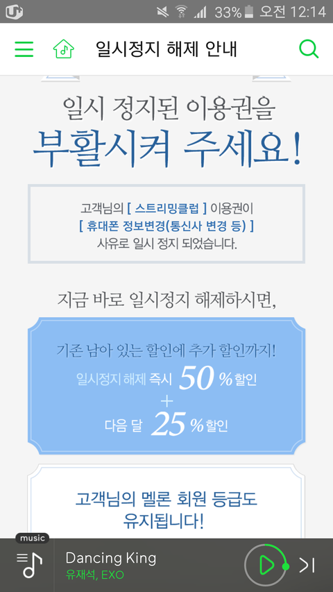 나3개월 무제한 스밍권 샀었는데왜 정지됬다고뜸??나그때 9천얼마 썼던거 같은데 뭐임..나 통신사 바꾼적도없고 폰바꾼적도없음..뭐임 개빡가네씨빨