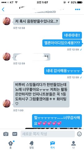 ㅜㅜㅜ트1위터에 머글분들께 음원선물한다고 올렸더니 이렇게왔다 완전훈훈해 ㅜㅜ둘다흥해라❗️❗️