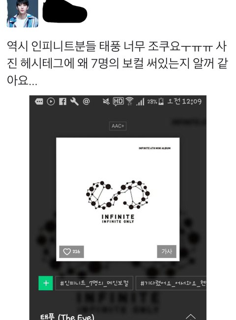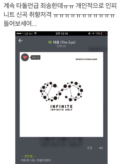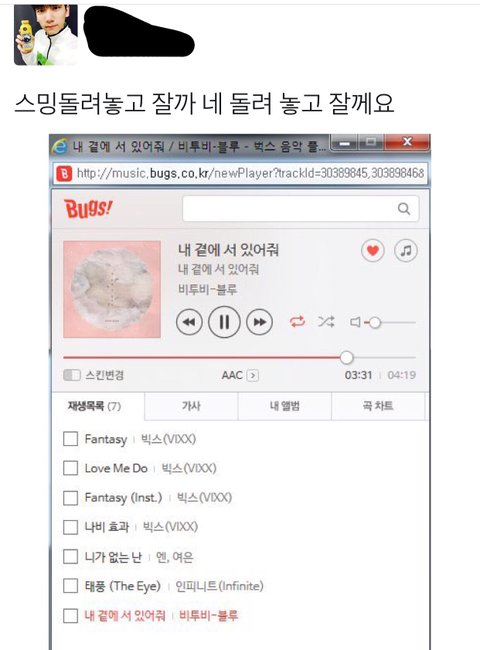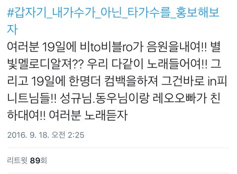 이건 어제 올린건데 비투비 유닛으로 컴백한다했을때부터 별빛들이 비투비 컴백한다고 스밍돌려줘야한다고 (비투빅스, 별빛멜로디 친함) 같이 홍보하고 다녔었음 근데 인피니트도 레오랑 성규랑 친분있다고 같이 스밍돌리자고함