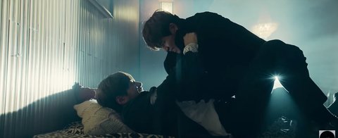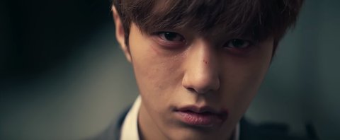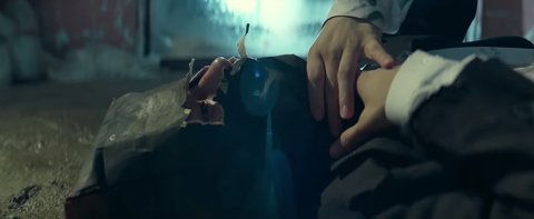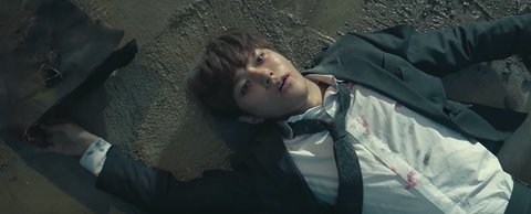 뮤비 처음부분, 엘은 혼자 길목에 피투성이 상처가득한 얼굴로 서있음