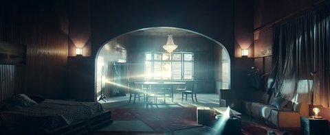 밖에 환한 빛이 비치는 텅빈 집안