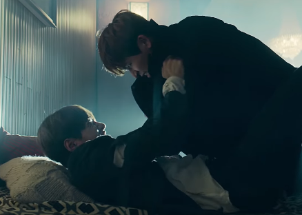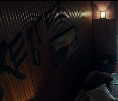 그리고 침대위에 벽에 regret - 후회라고 써있고 , 그 침대에서 엘이 호야하고 싸운다 , 바로 이때 내가 호야가 맡은 감정은 후회라는걸 확신했다