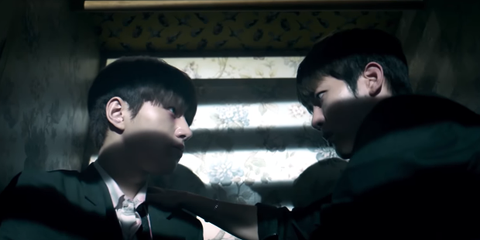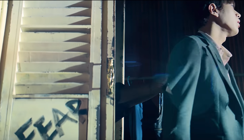 놀라움에 뒤걸음짓하다가 웃장에 있는 성열에게 잡혀 웃장안으로 들어간다, 여기서 결정적인 거 있다 , 바로 그 웃장에 fear - 두려움 이라고 써있는것이다 , 즉 성열-두려움