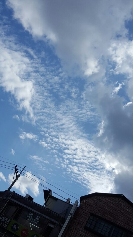 카테고리 어떤거써야할지 모르겟어서..우선 방탈미안해 ㅠㅠ오늘집밖에나왓을때부터 뭔가 이상한것같아서 아침 점심 저녁 이렇게 구름사진찍었는데 좀봐줘 지진운인것같아서..