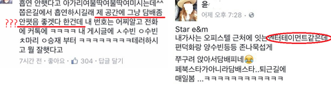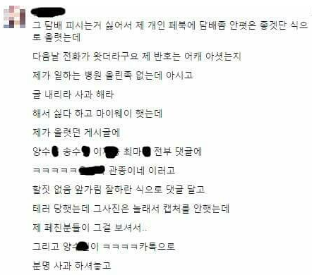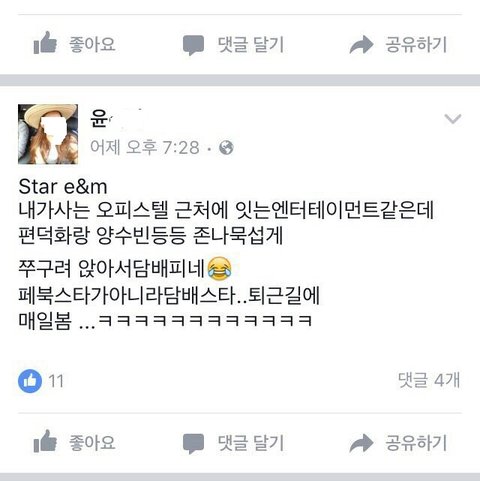 페북에 담배 좀 안폈으면 좋겠다는 식으로 올렸다고 함
