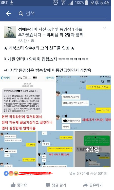 댓글에는 바로 자기 친구들과 같이 까고 있음 ;;; 이러니 양수빈이 카톡을 당연히 했지;;;