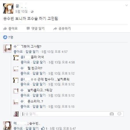 송수빈은 자기 돈 주고 협찬 안 받고 코 수술 했는데 학교친구 시샘하는것마냥 저렇게 비아냥 뎀;;
