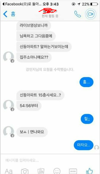그 방송을 보고 있던 사람이 윤xx에게 페메를 보냄