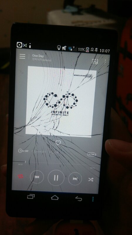 옛날에 쓰던 깨진 공기계.... 배터리 무진장 빨리 닳구나 ㅠㅠ 하루죙일 충전기 꼽아놔야할판 ㅠㅠ