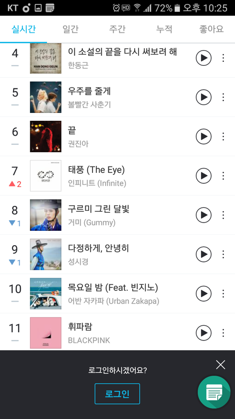 벅스는 실시간 어떻게 보는건지 모르겠다