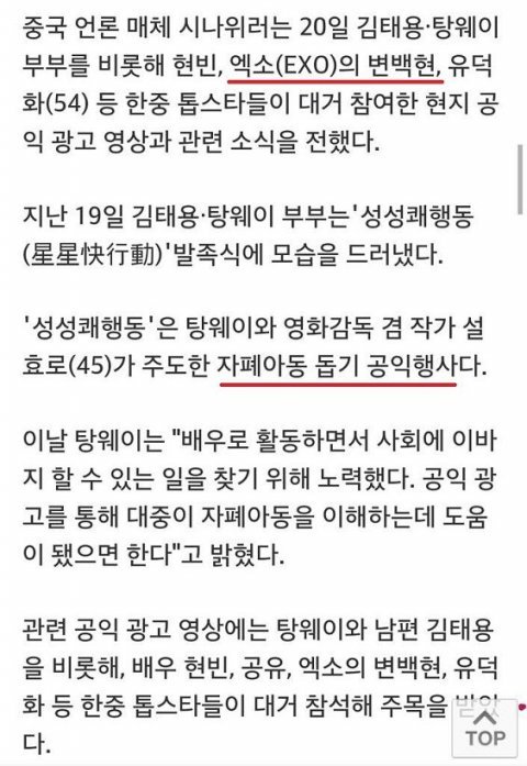 한국에서 자폐아 비하 발언을 했던 엑소 백현은 중국 현지에서 자폐아동 공익광고 제의가 들어오자