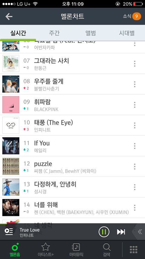 수록곡도 쭉 올라간다