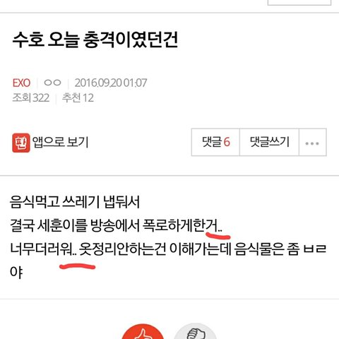 백현악개들 정신병자라니까 부들거리면서 백현팬이 쓴글 보면 수호까던어그로랑 말투, 온점 여러개 찍는거 똑같음