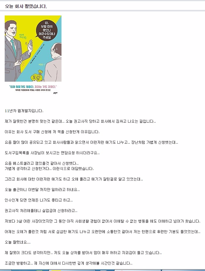 오늘 회사 짤렸습니다