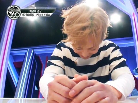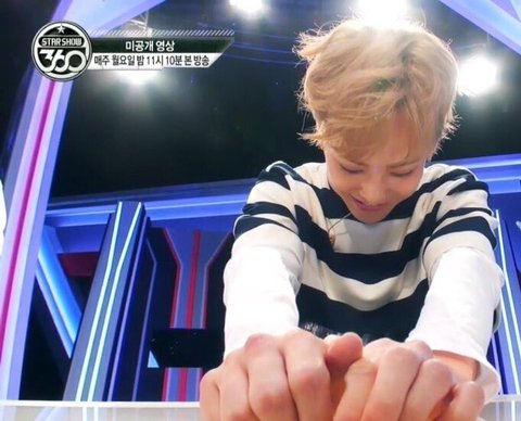 오른쪽사람 칭찬하기였는데 레이가 민석이 칭찬함ㅋㅋ