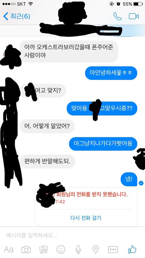 '아까 오케스트라보러갔을때 폰주어준 사람이야'