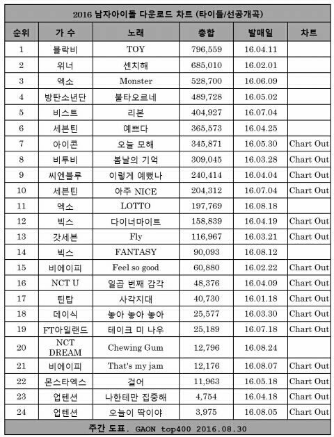 이 차트처럼 다운 횟수도 스밍 횟수랑 같이 연말 시상식 때 다 반영되거든?