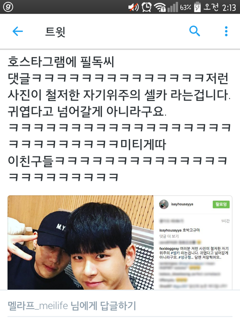 뒷북인가?호스타그램 피르도쿠님댓글