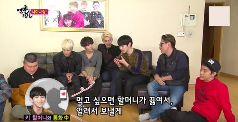 키 : 나 진짜 할머니한테 효도해야된다.내 키우느라 진짜 애쓰셨어. 어제 이거(선물) 준비하느라 날밤 깠거든. 여기 mp3에 우리 할머니가 좋아하는 뽕짝 다 넣었다. 우리 할머니 뽕짝 억수로 좋아하거든. 우리 할머니 나 못 오는 줄 알낀데, 가서 놀래켜주면 얼마나 좋을꼬.