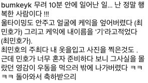 평소와 다름 없이 처음에는 멤버들과 신나게 생일축하를 하는 사진이 올라왔음