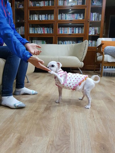뒷다리 근육위축으로 잦은 산책필요. 치주염을 앓아 스켈링 필요.
