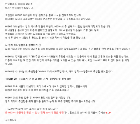 그리고 NAP 사장님!! 하이포 앨범 좀 자주 내주세요.ㅠㅠ