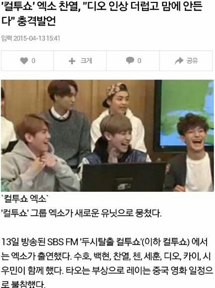 지금 멤버들 다 돌아가면서 까였는데 티끌만큼 디오 좀 까였다고 부들댐