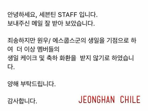 메일(저나니 생일조공인듯) 답장이라는데 감당 못 할정도로 많이와서 처리가 힘들어서 일수도있고 멤버간 편차때문일수도있고 뭐 이유는 플디만이 알테니까 이거다 저거다로 단정짓는 건 아닌거같아 ㄱㅋ에선 벌써 후자라고 쿵짝거리고있네...은근 줄세우기 아닌가 몰라 진짜