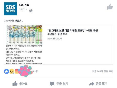 촉 ㅈㄴ 좋은 친구가 토욜에 지진오는거아님? 이랬는데 어제 ㅇㅇ 오늘 이거뜸...