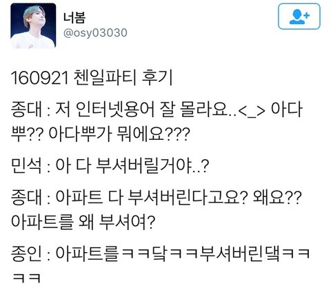 아다뿌=아 다 부셔버릴거야 맞잖아 . 오늘부터ㅋㅋㅋㅋ