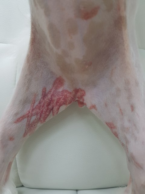 병원에서는 애기를 보자마자 심각하다고 했고 이거는 피부병이 아니고 클리퍼에 의한 상처로 보인다 100% 장담할순 없지만 미용에 의한 부분이 맞는 것 같다 라고 하셨습니다.