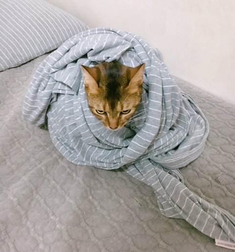 잠시만이라도 좀 조용히있으라고 돌돌 말아놨더니.