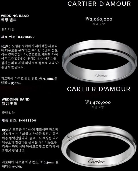 카이스탈 커플링으로 유명한 까르띠에 웨딩밴드