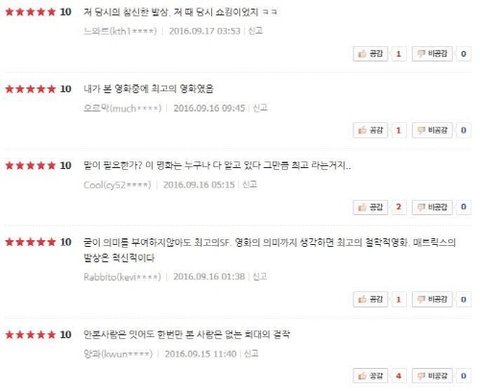 네티즌들이 최근에 남긴 댓글 에서도 호평의 연속!!!