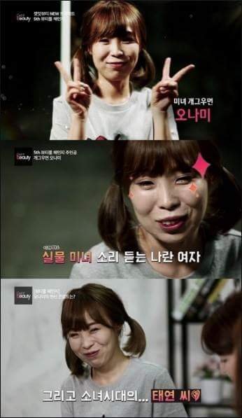 솔직히 어디가 태연임? 태연인지는 모르겠고, 그냥 화장하니까 하기 전보다 예쁘긴 함. 근데 그게 너무 예뻐서 미쳐버리겠다거나 그런 정도는 아님. 난 오히려 현숙씨.. 느낌이 더 강한거 같은데... 그리고 사람들이 양악 수술하라는 둥 그런 말 쉽게 하는데 하고 싶으면 니들이나 해라. 양악 수술이 얼마나 위험한건데 그렇게 쉽게 말함? 외모 지상주의를 찬양하는 풍조는 니들이 만드는 거다.