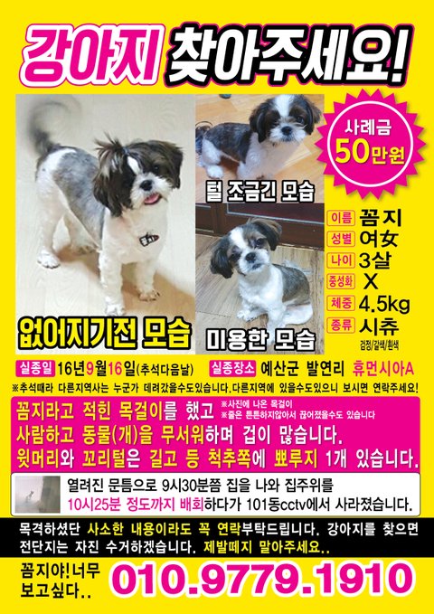 전단지도 붙이고 부르며 돌아다니고 물어봐도 아는사람이 없습니다.