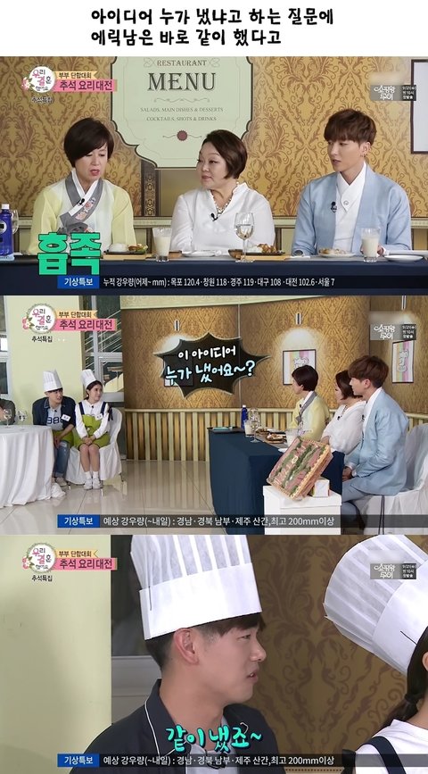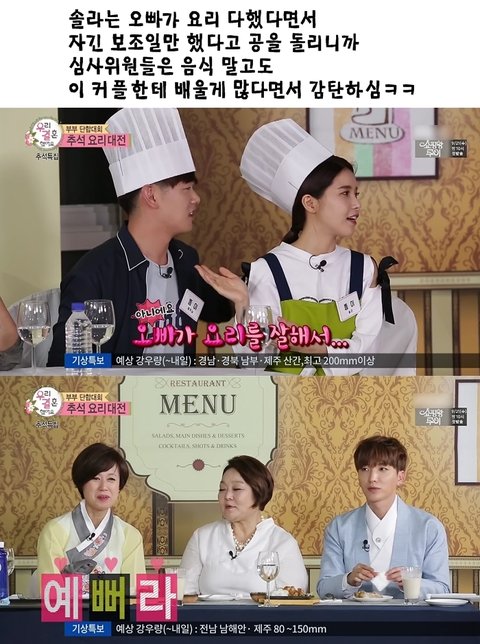 근데 다 좋은데 난 이부분이 너무 좋다 ㅋㅋㅋㅋ 뽀뽀받고나서 고맙고 좋아서 안아주는뎅 또 허리에 직접적으로 살닿게는 안안고 솔라 손 위로 안아주고나서 자기가 자기손으로 묶어서 안는거 그리고 요리할때 되게 급박한 상황인데도 난 그렇게 스윗한 말투는 난생 처음 들어봤음 ㅠㅠㅠ 정말 천사아닐까 생각함 ㅠㅠㅠㅠ 유툽에서 에릭남 요리대전 치면 있음 영상으로 봐야됨ㅋㅋㅋㅋㅋㅋ