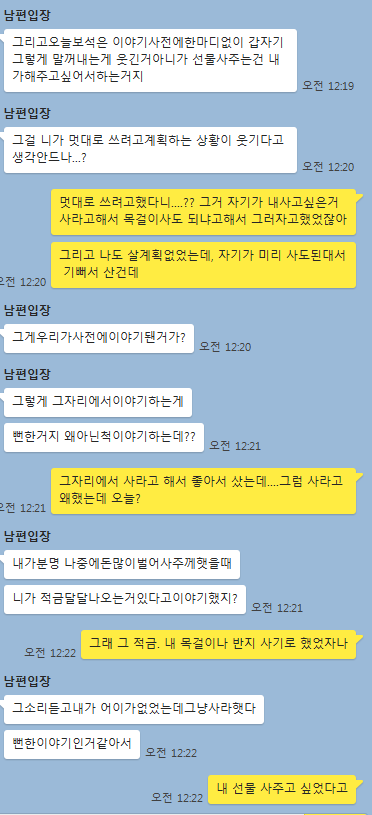 남편: 적금얘기를 꺼낸다는 자체가 지금 당장 사고 싶다는 말 아니냐, 그리고