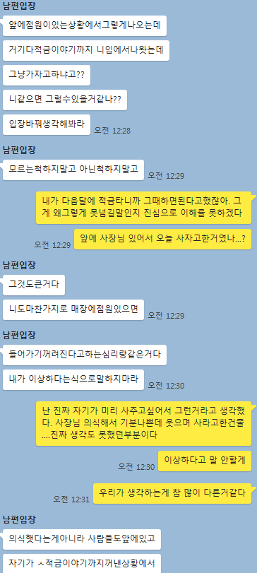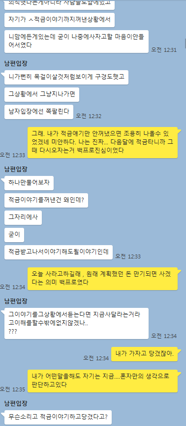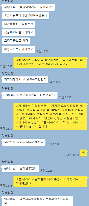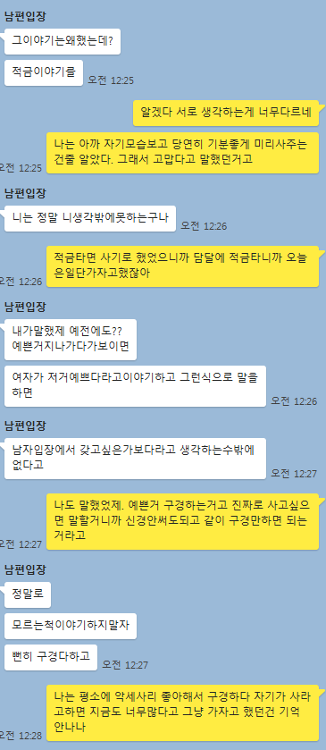 아내:적금은 원래 그렇게 계획 됐던거라 말 꺼낸거고, 분명 다음달에 살거라고 가자고 했는데