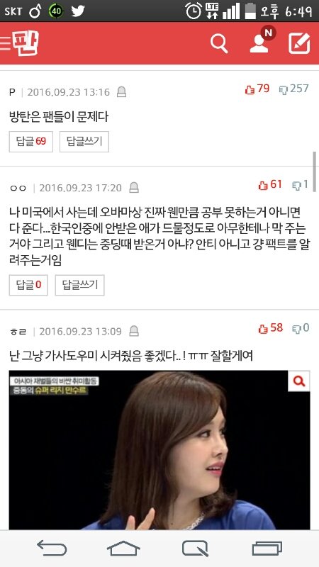 머리채 잡힌글 밑에꺼 좋은걸로 추천누르자 타팬 비하하는거나 이상한거 올리지말고