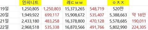 사진보면 알겠지만 현재까지 어제 12시까지 우리가 300만, ㄹㄷㅂㅂ분들이 대략 200만, ㅇㅊㅈ분이 약 80만