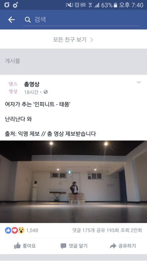 울 2배속안무영상 올랐던 얼굴책에