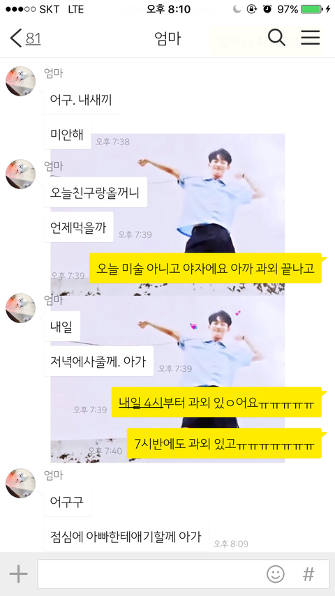 헐 톡선이라니ㅋㅋㅋㅋㅋㅋㅋ댓글들 보니까 어머니들 다 귀엽고 매력있으시다ㅎㅎㅎ! 아 댓글에 폰트 질문 있었는데 아이폰이라 카톡 글씨체 카카오 얇은체야!! 그리고 덕밍아웃ㅎ...